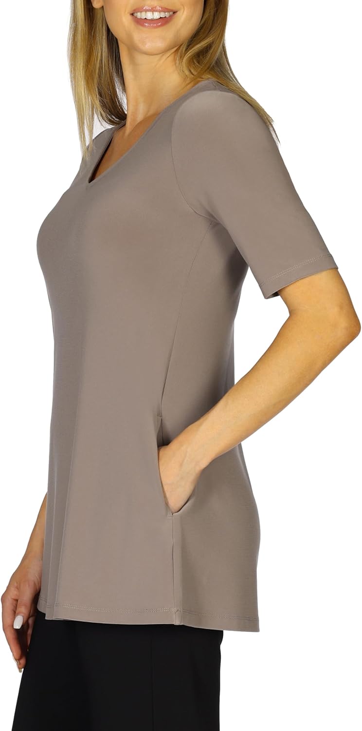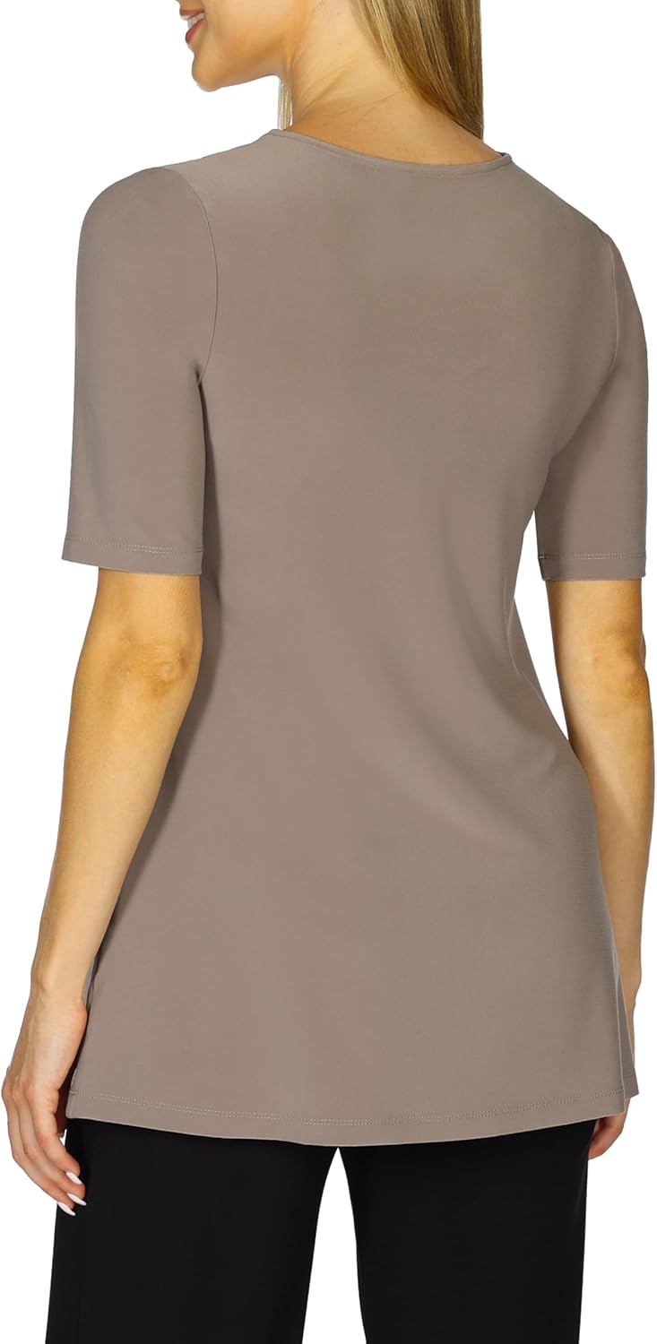 Selousuá Womenu0027s Knit Elbow Sleeve V-Neck Tunic Top Comfy and Stylish Ladies A-Line Half Sleeve Tunic Top Perfect Travel Top